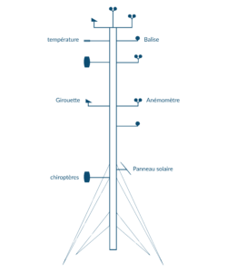 La pose du mât de mesure est réalisée dans le cadre de l’étude de vent et dans certains cas, pour venir appuyer l’étude environnementale, en apportant un complément d’étude, notamment sur les chauves-souris.